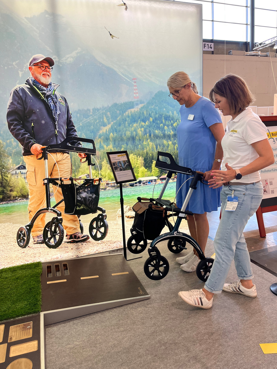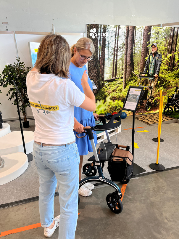 Statistically, rollator users fall once a year - that doesn't have to happen! As a rollator manufacturer, it is therefore very important to us to teach users how to use the rollator correctly and to practise with them. Because only those who know their rollator and are practised in sitting down and standing up, overcoming obstacles and driving on different surfaces, will enjoy using the rollator! Safety in use also means a more independent and self-confident life. We at Saljol support you in this with our concept "Rollator Mobility".